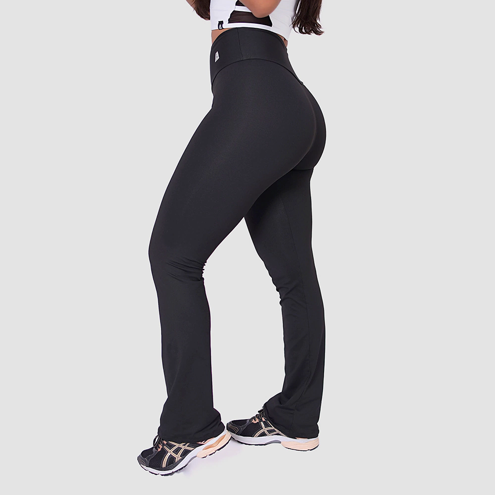 Com seu design flare, esta calça destaca-se tanto pela elegância quanto pela praticidade, sendo perfeita para diversas ocasiões, desde sessões de exercício até momentos casuais ou até mesmo eventos sociais.